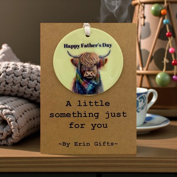 A Little Something - 'Highland Coo' Card and Ceramic Keepsake