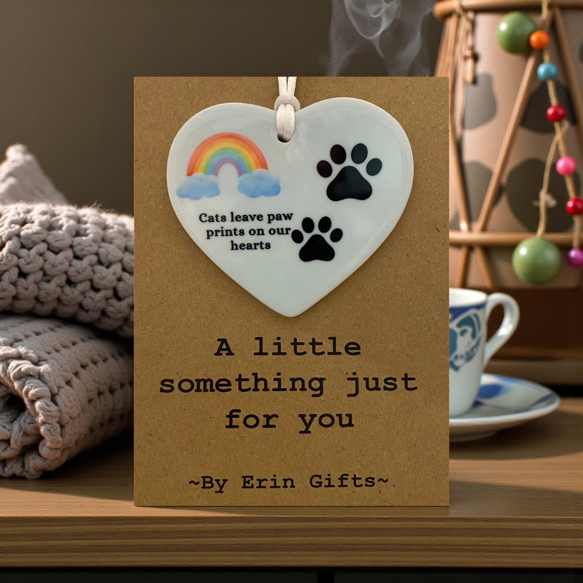 A Little Something - Cats Leave Pawprints... Card and Ceramic Keepsake A Little Something...