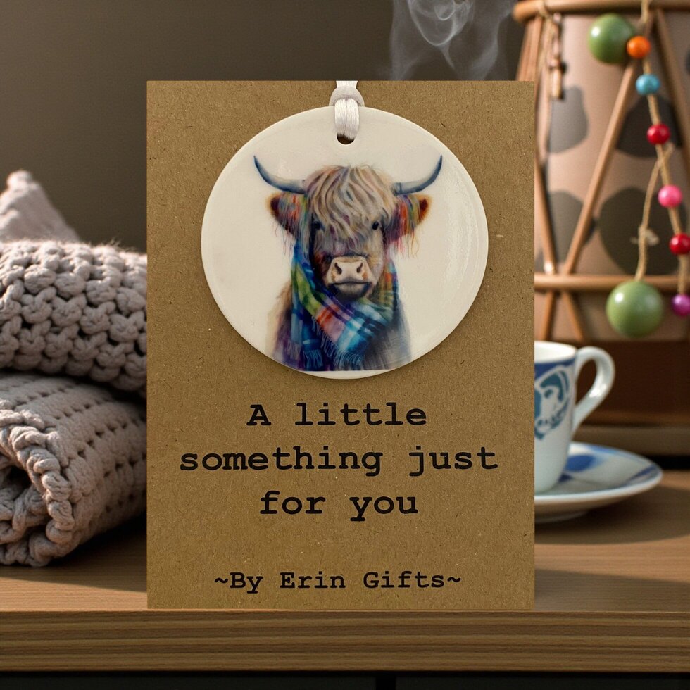 A Little Something - 'Highland Coo' Card and Ceramic Keepsake A Little Something...