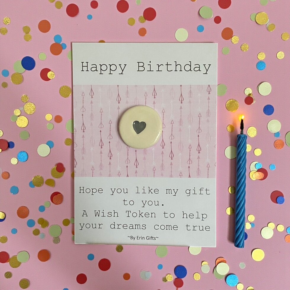 ' Happy Birthday (Pink Card) ' Ceramic Wish Token and Card Ceramic Wish Token Message Cards, New and Topical