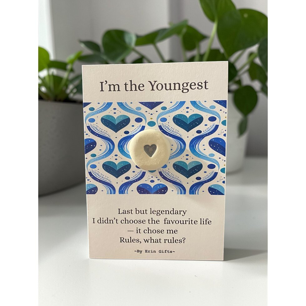 ' I'm The Youngest...' Ceramic Wish Token and Card Ceramic Wish Token Message Cards, New and Topical