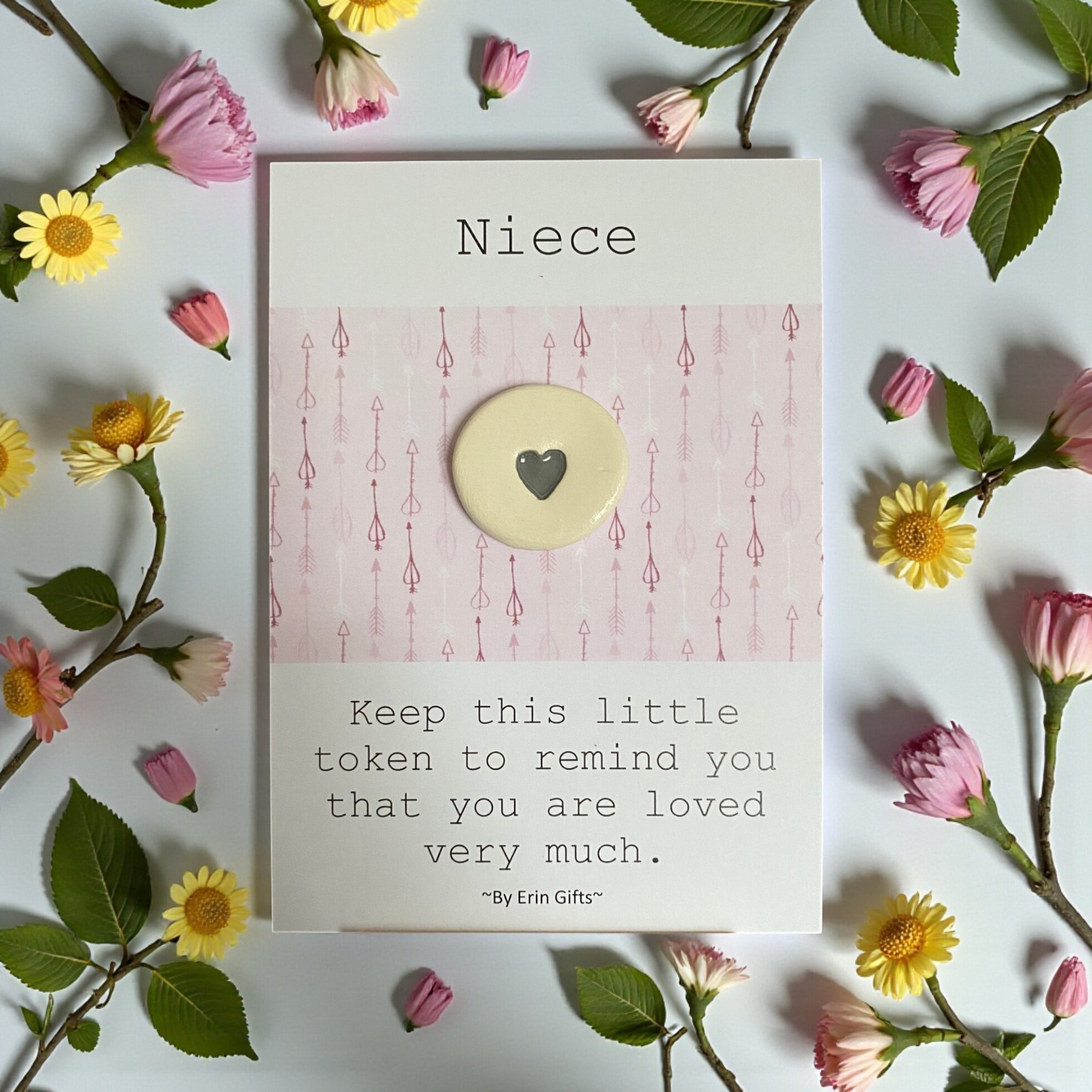 ' Niece (Pink Card) ' Ceramic Wish Token and Card New and Topical, Ceramic Wish Token Message Cards