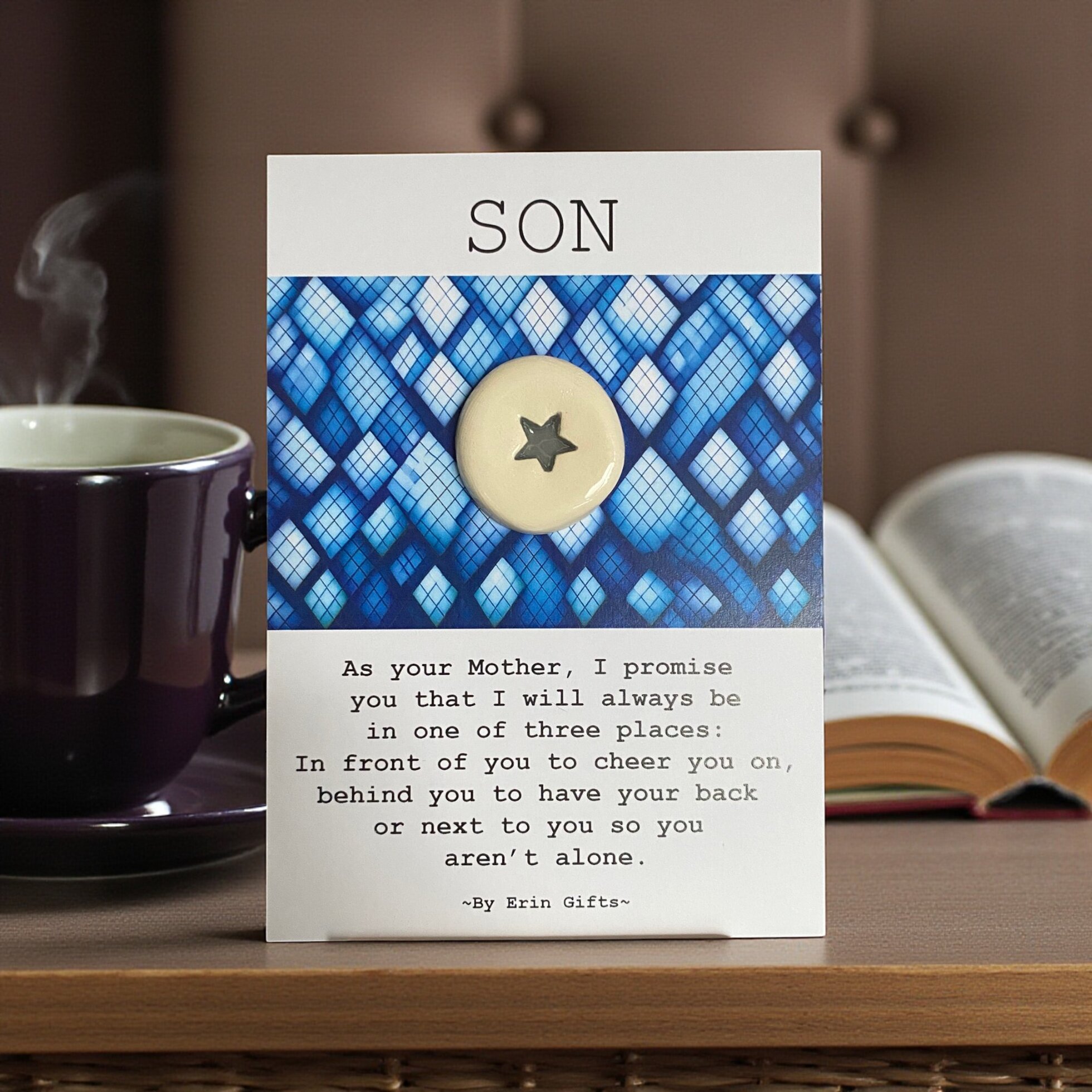 ' Son, As Your... ' Ceramic Wish Token and Card New and Topical, Ceramic Wish Token Message Cards