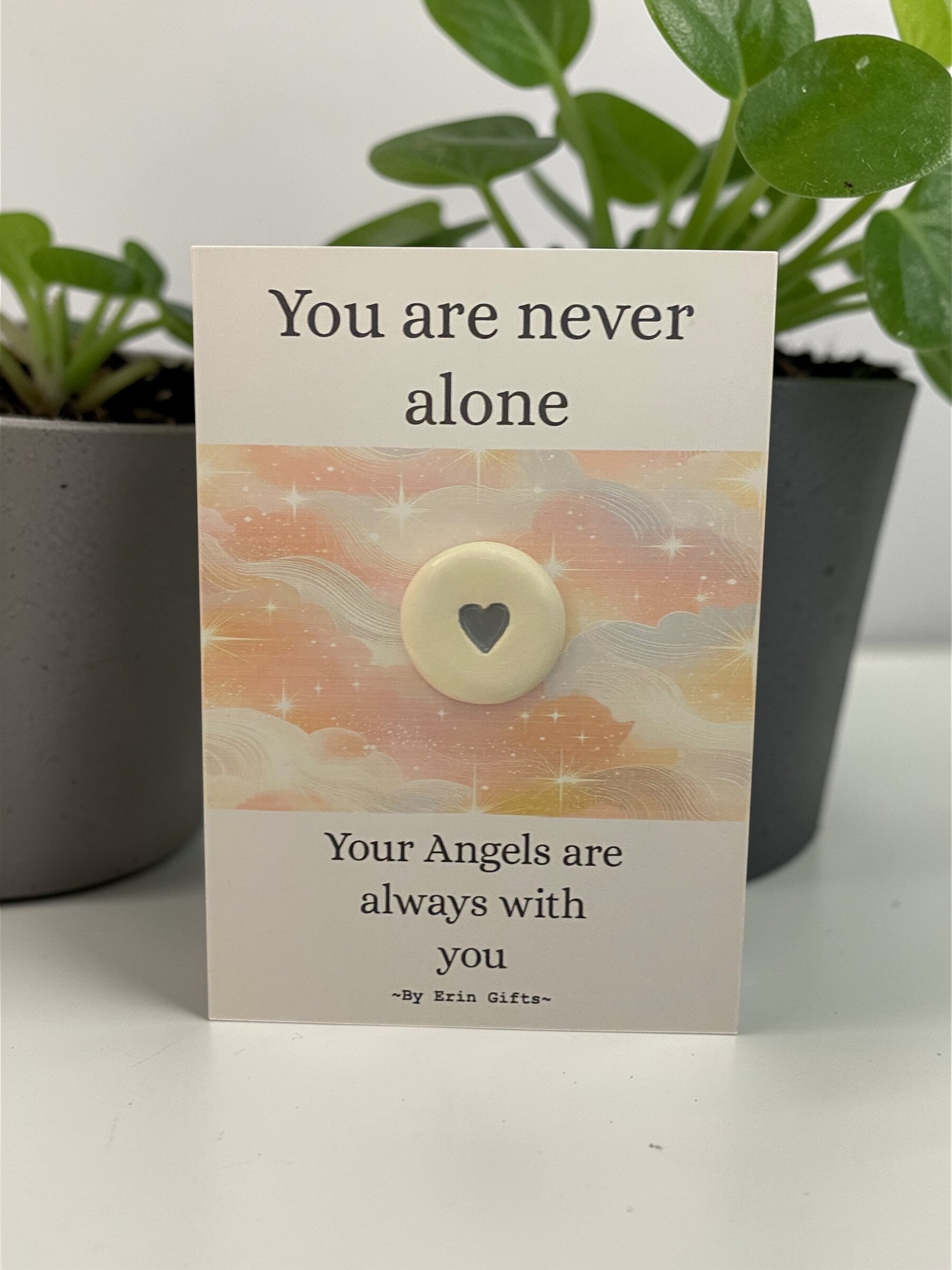' You are never alone... ' Ceramic Wish Token and Card New and Topical, Ceramic Wish Token Message Cards