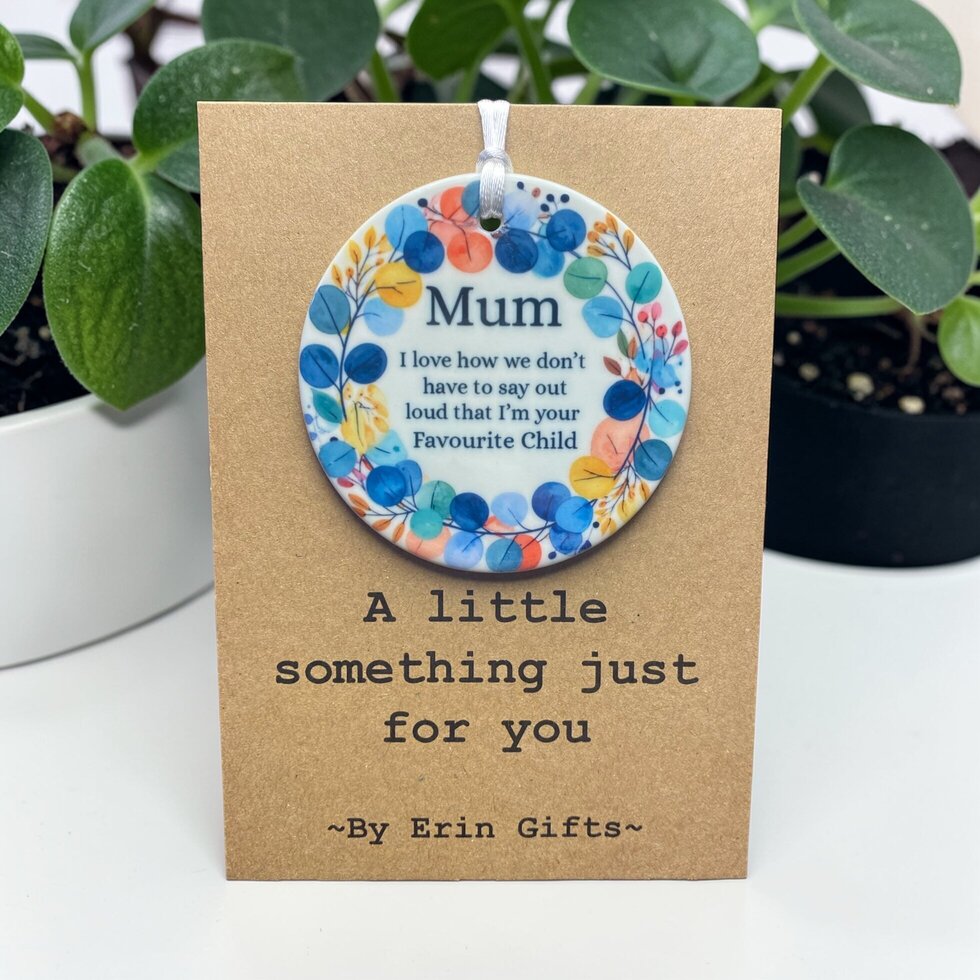 Mum, Favourite Child (Blue Floral) - A Little Something Card and Ceramic Keepsake Gift A Little Something...